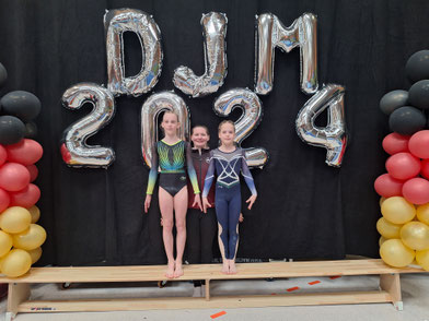 Bei den Deutschen Jugendmeisterschaften im Turnen gelang Emilia (links im Bild) im Gerätefinale am Sprung wahrhaft der Sprung zur Silbermedaille und dem Vize-Titel in ihrer Altersklasse (12 Jahre). Dabei war der Startplatz im Gerätefinale nach einem tollen Vierkampf-Ergebnis (16.) am Vortag bereits das Tüpfelchen auf dem "i", aber es sollte noch besser kommen: Eine mitreißende Bodenmusik beflügelte die junge Dame zu zwei wunderschönen "Tsukis". Die nach-folgende Konkurrenz konnte nicht mehr an ihr vorbeiziehen. Auch das überraschend gute Mehrkampf-Ergebnis von Julie (13., rechts im Bild) sorgte für ungeteilte Freude in der Dortmunder Fan-Gemeinde, die mit ins hessische Kassel gereist war. Trainerin Lara Glagow (Mitte) und Stützpunktleiterin Steffi Liening waren richtig aus dem Häuschen: "Voll auf der richtigen Welle waren die zwei! Sie haben es genossen, da sein zu dürfen, haben verstanden, dass sie richtig was können und das auch gezeigt!“, ist Steffi Liening stolz, dass die beiden Eigengewächse ihr Potential abrufen konnten: „Vier Geräte, und es ging alles, aber auch wirklich alles glatt!“